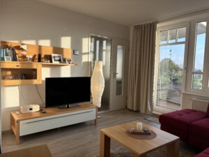 Das Sofa kann als weiteres Bett verwendet werden, so dass die Wohnung 1-3 „große“ Gäste beherbergen kann.
