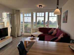 Sie setzt sich auf etwa 45m² aus Wohn-/ Essbereich, Duschbad, Schlafzimmer und Balkon mit Deichblick zusammen.