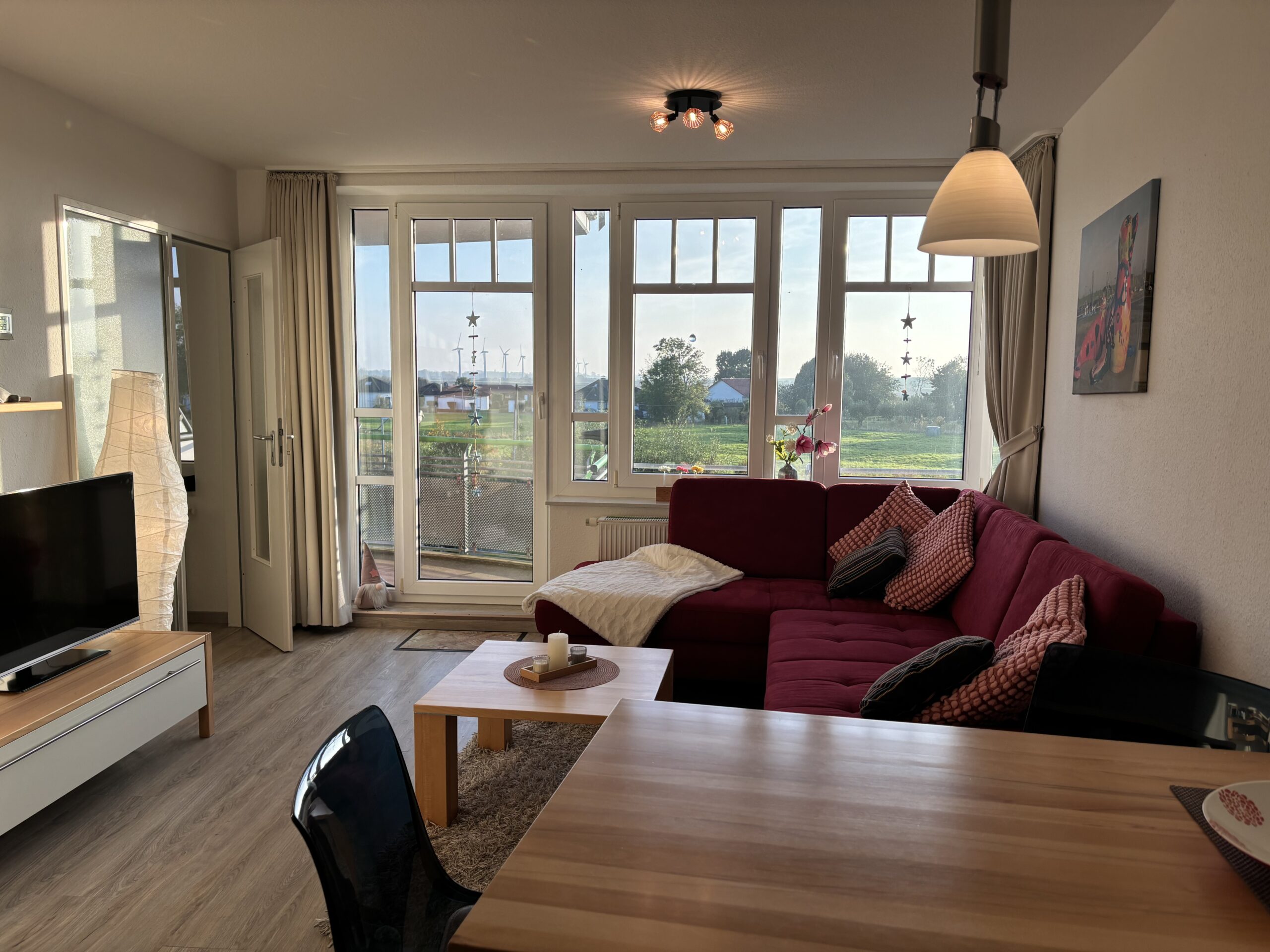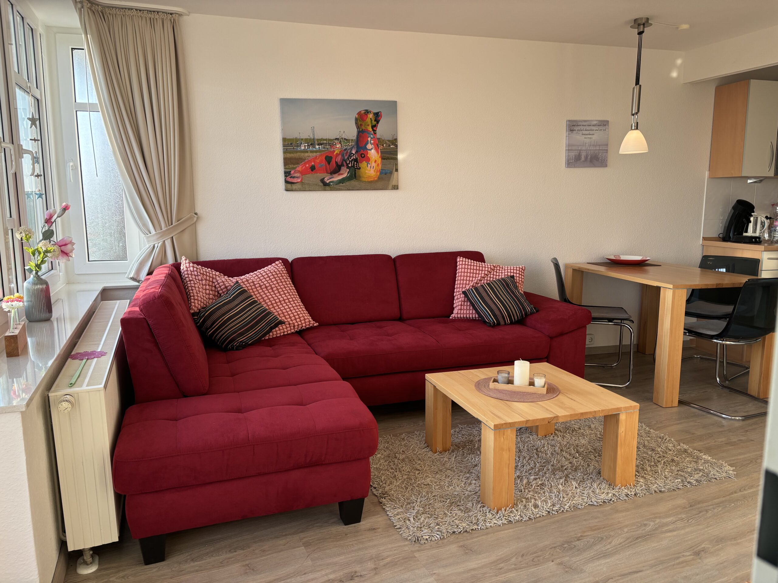 Sie setzt sich auf etwa 45m² aus Wohn-/ Essbereich, Duschbad, Schlafzimmer und Balkon mit Deichblick zusammen.